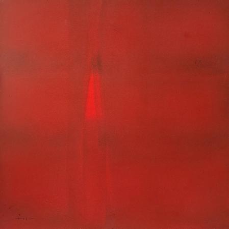 Dhane’s compositions resist centrality. Vertical fissures, muted blocks, and barely-there geometries behave like pauses in thought; structures that emerge only to dissolve back into silence. There is a strong sense of held breath: nothing spills, nothing insists. Even the most saturated reds feel meditative rather than dramatic, as if heat has been absorbed and disciplined by time.
